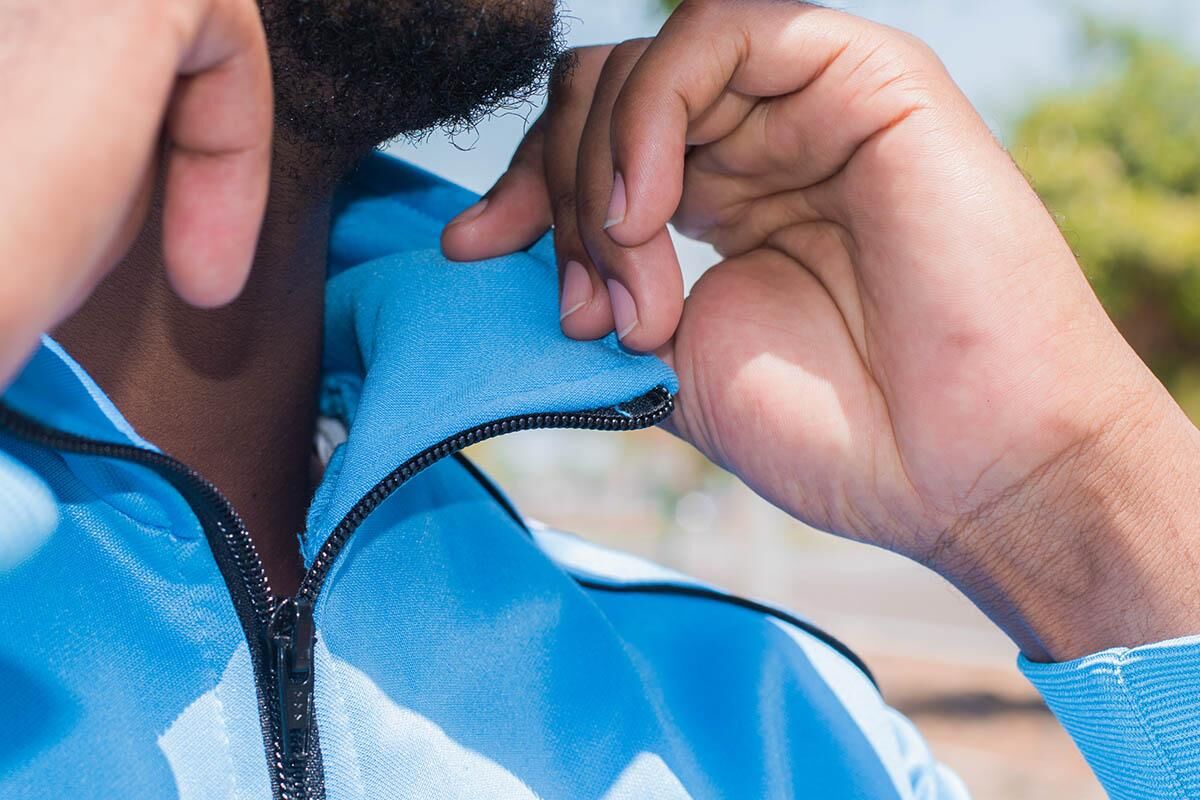This Sky Blue tracksuit top only from Xhibite is the perfect addition to your jackets collections. Made from a lightweight polyester material, this Track suit top is soft, comfortable and breathable. Our classic Xhibite logo on the chest level adds a subtle yet stylish touch to the overall design. The slim fit of this tracksuit top ensures a fitting and comfortable look that is perfect for everyday wear. This sky blue tracksuit top from is incredibly versatile and can easily be dressed up or down. Whether you‘re out for a morning jog or out for drinks with friends, this top will have you looking and feeling your best. Because its slim fit we commend you get a size bigger than your regular.